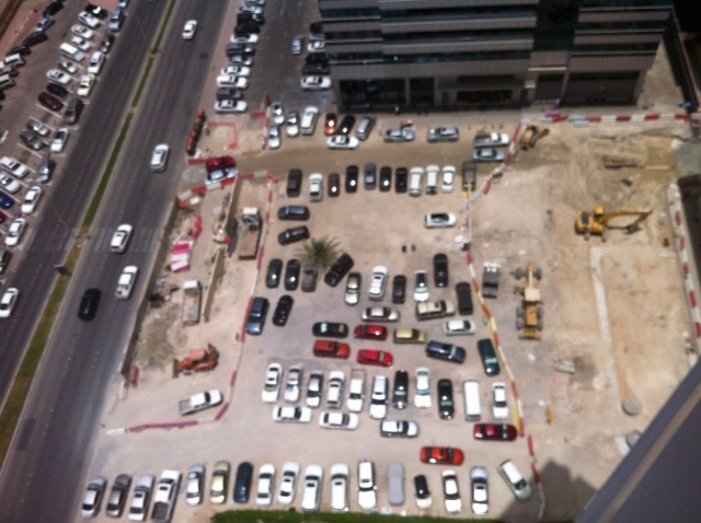 | This is the as yet unfinished dirt parking lot behind our apartment building. I’m happy we have a parking garage! |